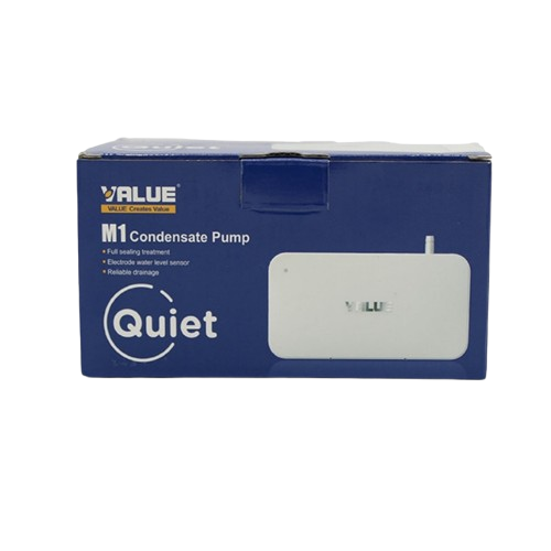 پمپ تخلیه آب تقطیر مدل M1 برند VALUE یکی از بهترین انتخابها برای سیستمهای تهویه مطبوع و کولر گازی است. این پمپ با طراحی کمصدا (Quiet) و عملکرد قابل اعتماد، وظیفه تخلیه آب حاصل از تقطیر در یونیت داخلی کولر گازی را بر عهده دارد.
